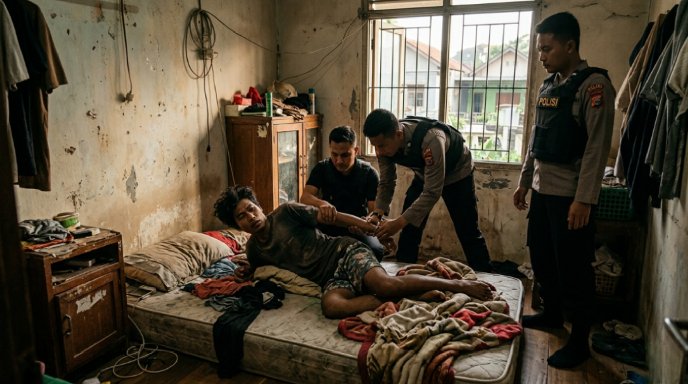 Mojokerto – Masa pelarian SAGP (27) berakhir tragis. Pemuda asal Desa Randegan, Kecamatan Dawarblandong, Kabupaten Mojokerto, ini tertidur pulas di tempat persembunyiannya, lalu petugas Resmob Satreskrim Polres Mojokerto Kota menjemputnya, Rabu (1/4/2026). Selama setahun penuh ia menjadi buronan kasus pencabulan terhadap pacarnya sendiri.
