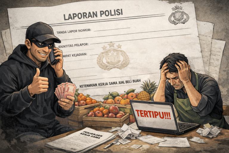 Blitar – Aksi penipuan dengan modus kerjasama jual beli buah alpokat dan durian merugikan seorang petani di Kecamatan Ponggok, Kabupaten Blitar, hingga puluhan juta rupiah. Korban akhirnya melaporkan kejadian tersebut ke Polsek Ponggok.