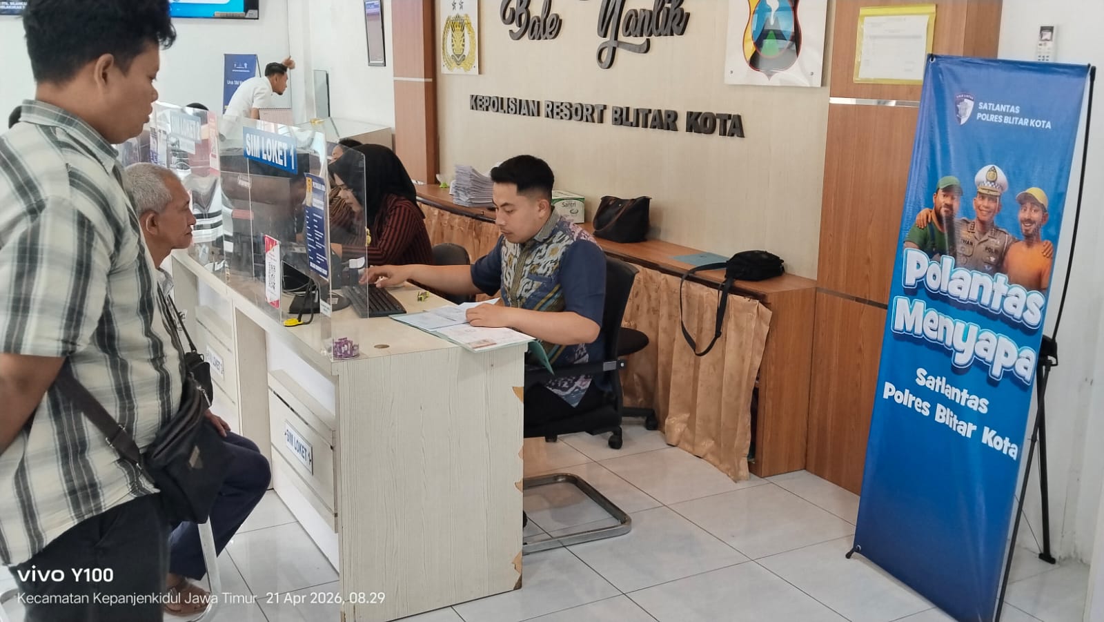 Blitar – Samsat Blitar Kota menggelar program Polantas Menyapa dengan personil memakai baju adat Jawa. Layanan pengurusan registrasi kendaraan bermotor berlangsung cepat, ramah, dan humanis pada Selasa (21/4/2026). Personil Satpas Polres Blitar Kota sengaja memilih busana tradisional untuk memperingati Hari Kartini sekaligus mendekatkan pelayanan kepada masyarakat.