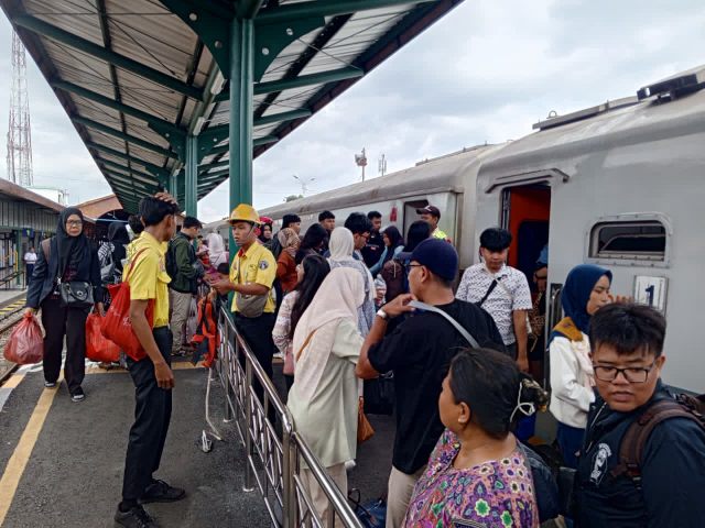 Meski puncak arus balik telah terlewati, kereta api tetap menjadi moda favorit masyarakat untuk kembali ke kota asal setelah merayakan Hari Raya. Tren kepadatan memang mulai melandai, tetapi volume penumpang yang berangkat masih tergolong tinggi.